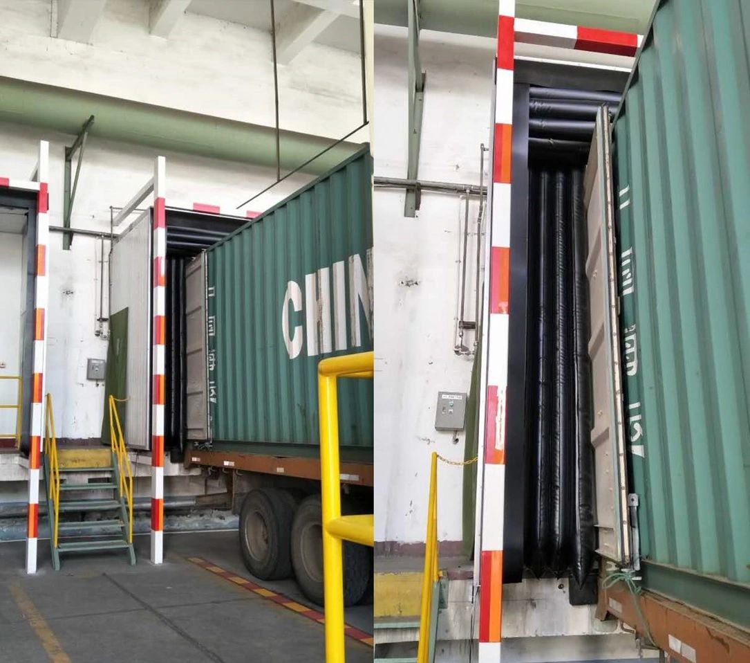 Inflatable dock provide a tight seal for cold storage or applications requiring a high degree of sealing. A blower inflates the airbag after a truck is docked and the pressure on the airbag acts to seal the sides and top of the truck. the unit is only inflated after the trailer has docked and deflated before departs.